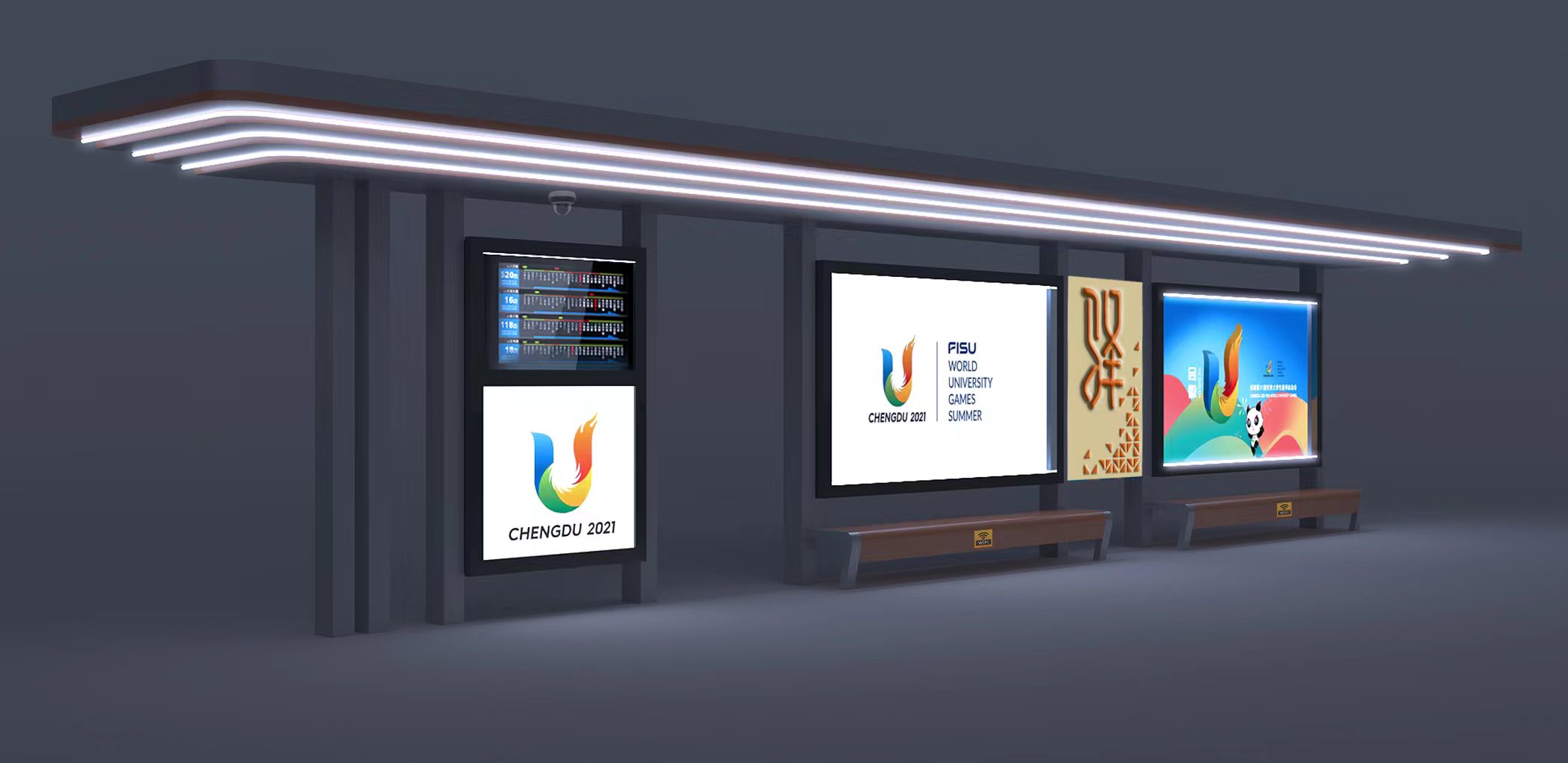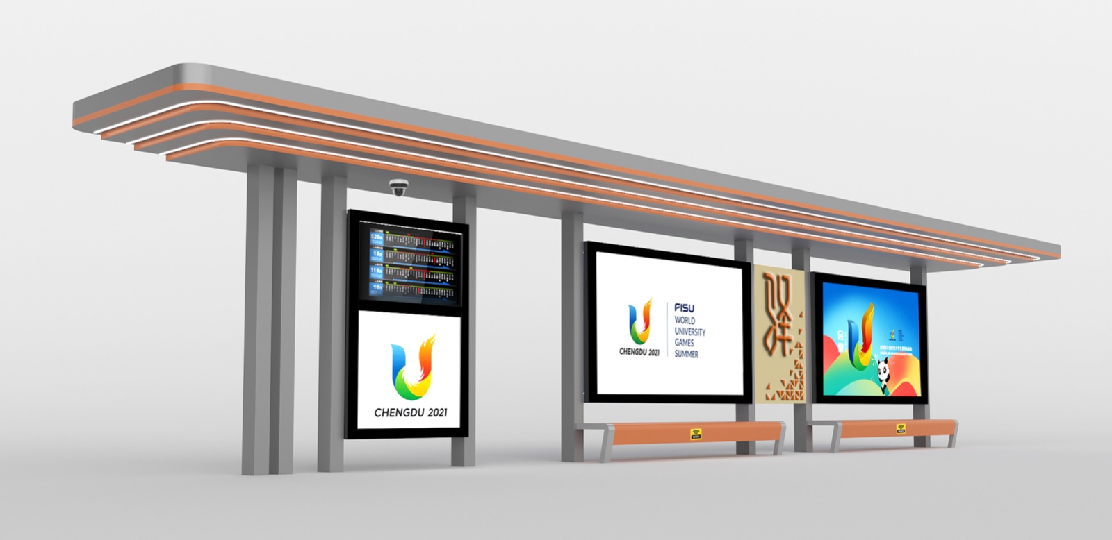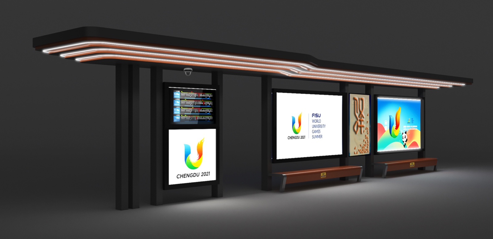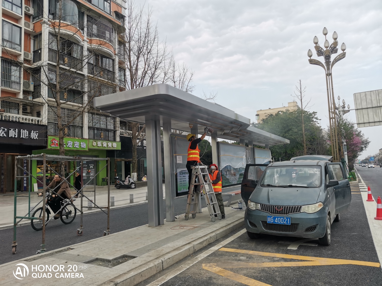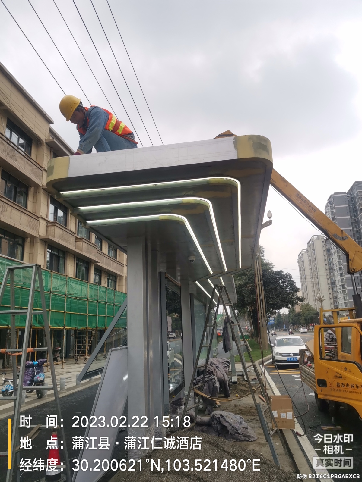 由我公司承建的四川蒲江朝陽(yáng)大道、鶴山北路城市道路空間一體化改造項(xiàng)目--智慧公交站臺(tái)工程圓滿完工,造型呈一字形公交站亭,頂棚融入LED氛圍燈照明、每座站臺(tái)實(shí)現(xiàn)安全監(jiān)控、電子報(bào)站、座凳充電、地域特色LOGO。