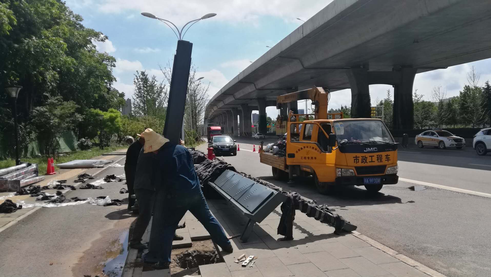 公司及時(shí)組織工程部的基建人員、安裝人員、項(xiàng)目經(jīng)理駐扎武漢現(xiàn)場(chǎng),因地制宜的調(diào)配機(jī)具、車輛和安裝器械等,完成了從基坑-預(yù)埋-澆筑-清運(yùn)-安裝-回填-路面恢復(fù)等全部施工內(nèi)容,并交付使用。